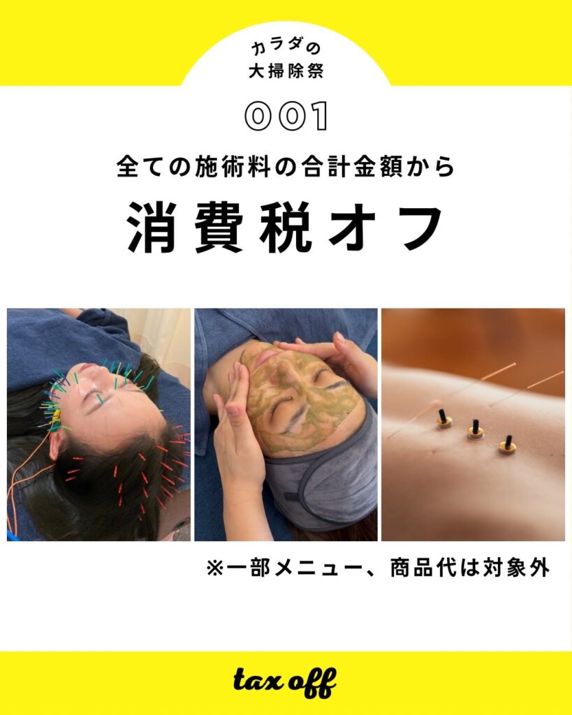 期間中は すべての施術が“消費税OFF” でご利用いただけます。