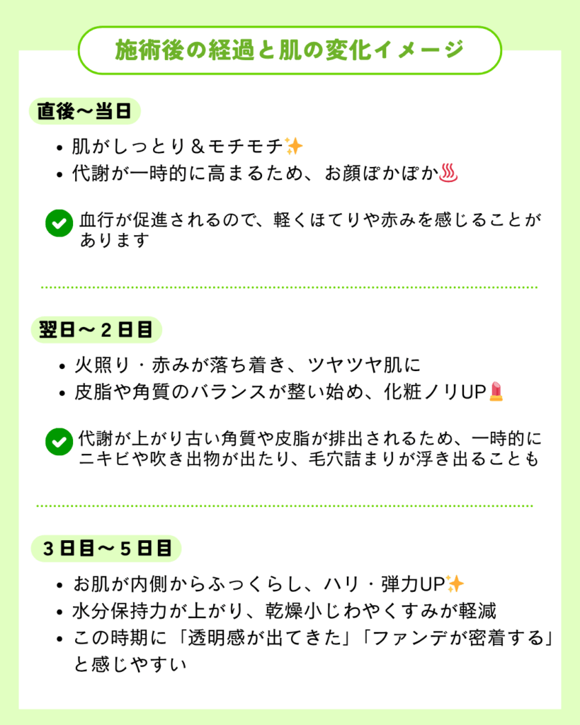 ✔ 当日〜翌日はたっぷり保湿(乾燥注意)